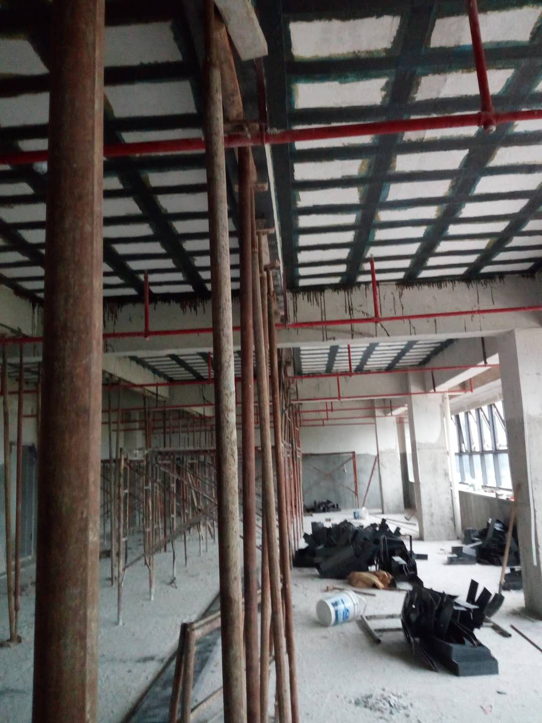 這兩種方法的共同點是均需要通過結構膠受剪使鋼板或碳纖維布與原構件共同工作,因此在加固部位必須要進行防火處理,由于一般的結構膠在60oC以上強度會降低,遇明火會燃燒。