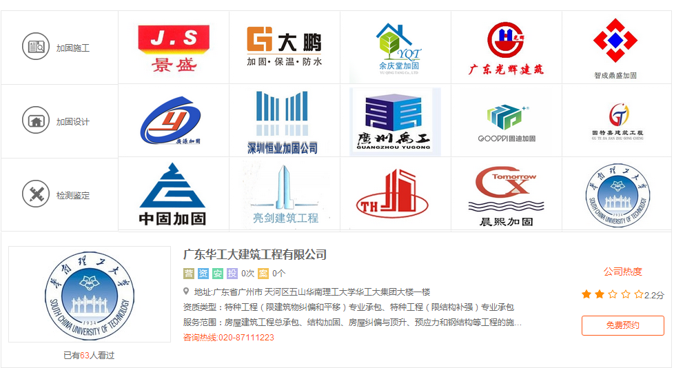 2、對于初次尋找加固類企業的用戶或遇工程難度較大的業主,建議采用預約功能委托平臺尋找服務企業,加固之家平臺采用大數據技術對加固服務企業進行詳細分類與精準定位,能最高效的為業主挑選出最合適的企業。