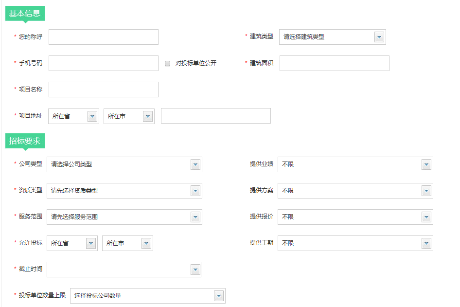 2、招標方式是我們平臺的重點發展環節,業主可以根據項目特點或自身要求,進行相應企業屬性設定,只對滿足要求的企業開放邀標,同時可以要求投標企業提出提供業績、報價、方案等,最大限度地篩選出心儀企業。